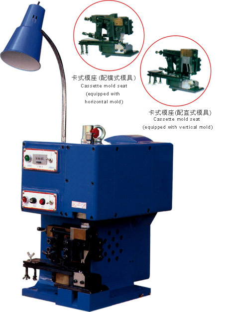 - 本機為萬能端子機,采滾輪式離合器,聲音小、定點準。變更端子,可換卡式模座或